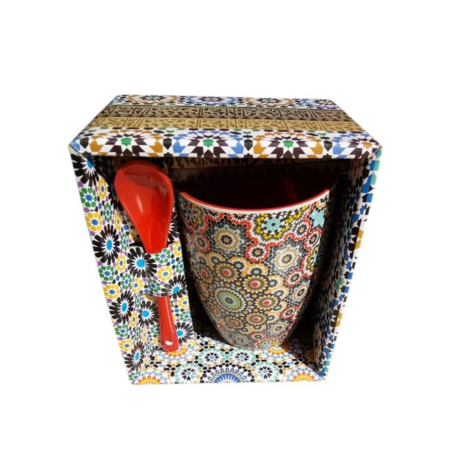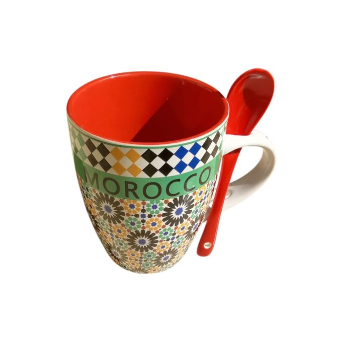 Mug en Céramique aux Motifs Zellige Marocain – Élégance et Tradition – Vert-Multicouleur